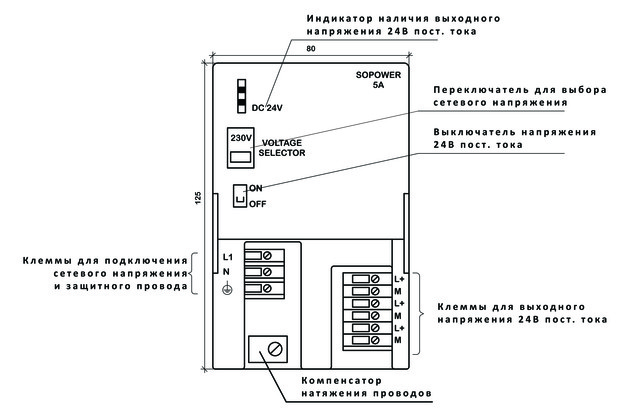 Стабілізований блок живлення серії SOPOWER PS307, з вхідною напругою 100/240V AC і вихідним напругою 24V DC (максимальний струм 5А), призначений для контролерів і модулів розширення Siemens S7-300, Vipa 300V і Soflink 300. Є повним аналогом модулів Siemens (SITOP) S7-300 6ES7307-1ЕА00-0AA0 або Vipa 307-1ЕА00.
