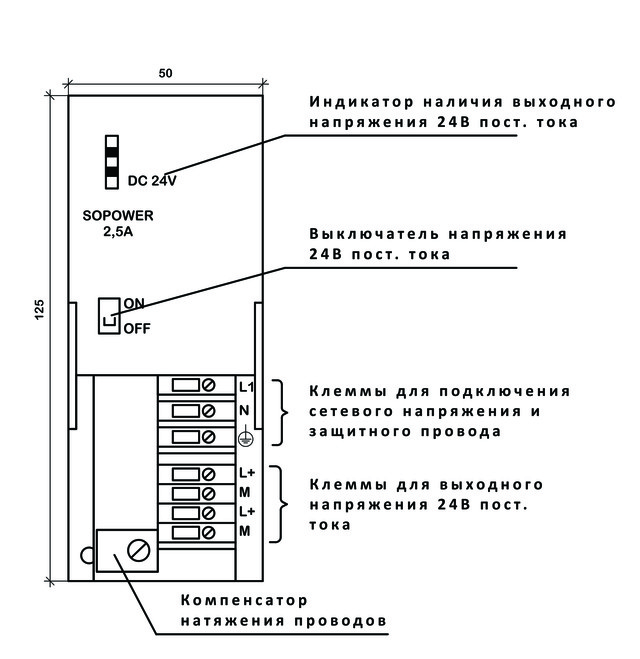 Стабілізований блок живлення серії SOPOWER PS307, з вхідною напругою 100/240V AC і вихідним напругою 24V DC (максимальний струм 2,5 А), призначений для контролерів і модулів розширення Siemens S7-300, Vipa 300V і Softlink 300. Є повним аналогом модулів Siemens (SITOP) S7-300 6ES7307-1ВА00-0AA0 або Vipa 307-1ВА00.